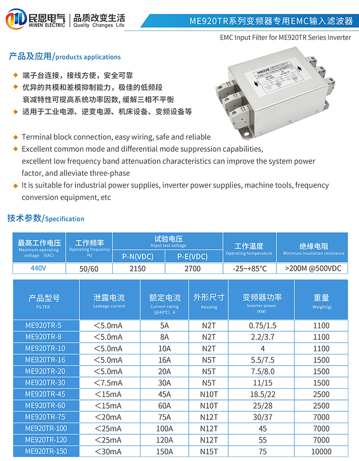 ME920TR系列变频器端子台式输入EMC滤波器