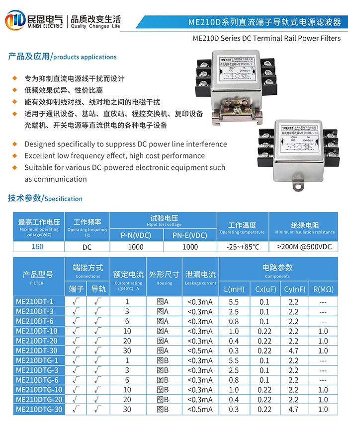 ME210DT系列直流端子式电源滤波器