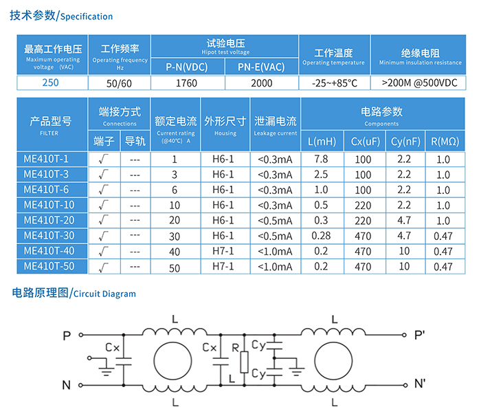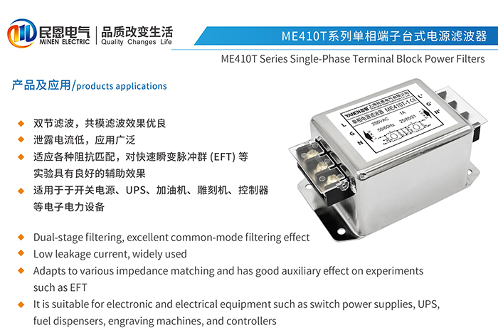 ME410T系列单相端子台式电源滤波器