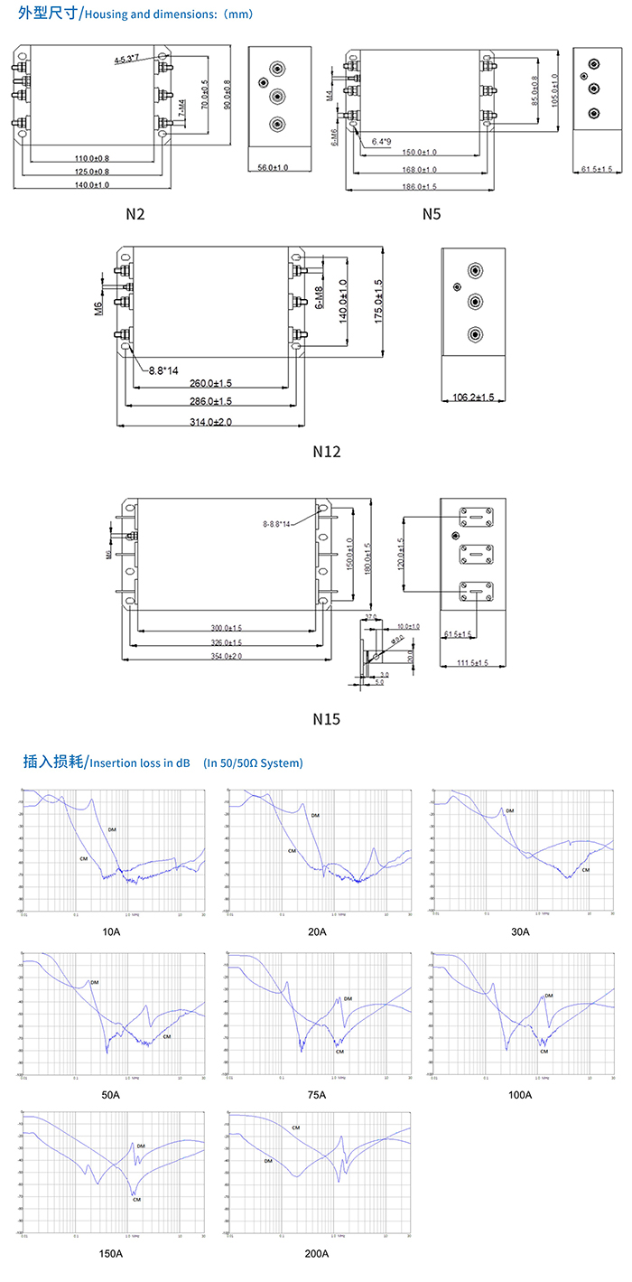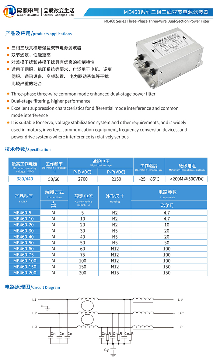 ME460系列双节三相三线电源滤波器