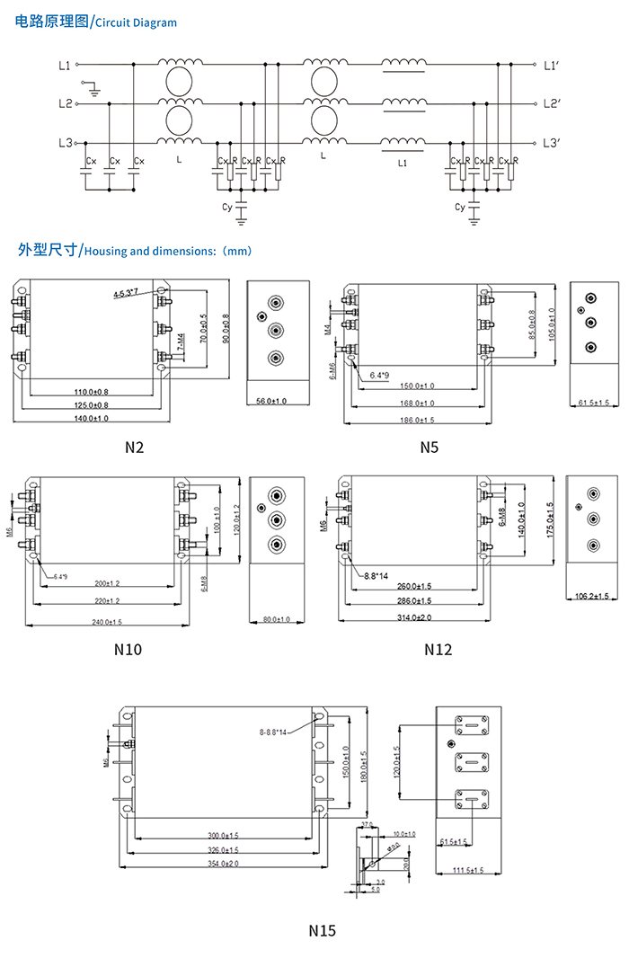 ME760系列三节三相三线电源滤波器