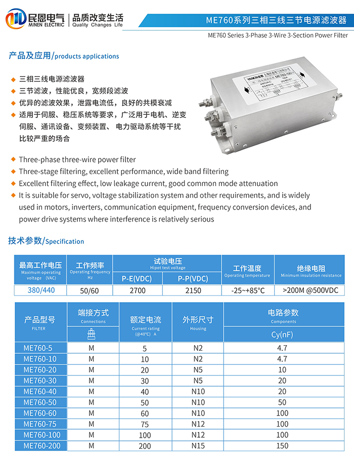 ME760系列三节三相三线电源滤波器
